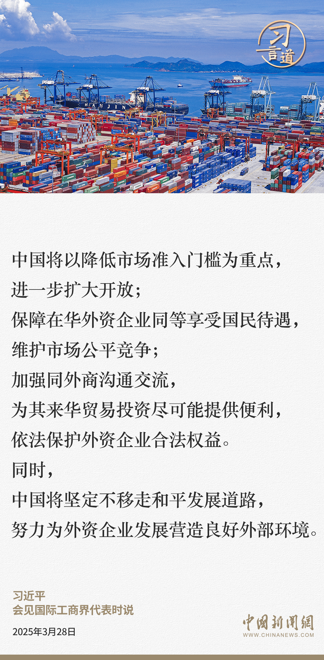 3月28日,國(guó)家主席習(xí)近平在北京人民大會(huì)堂會(huì)見國(guó)際工商界代表。習(xí)近平主席指出——