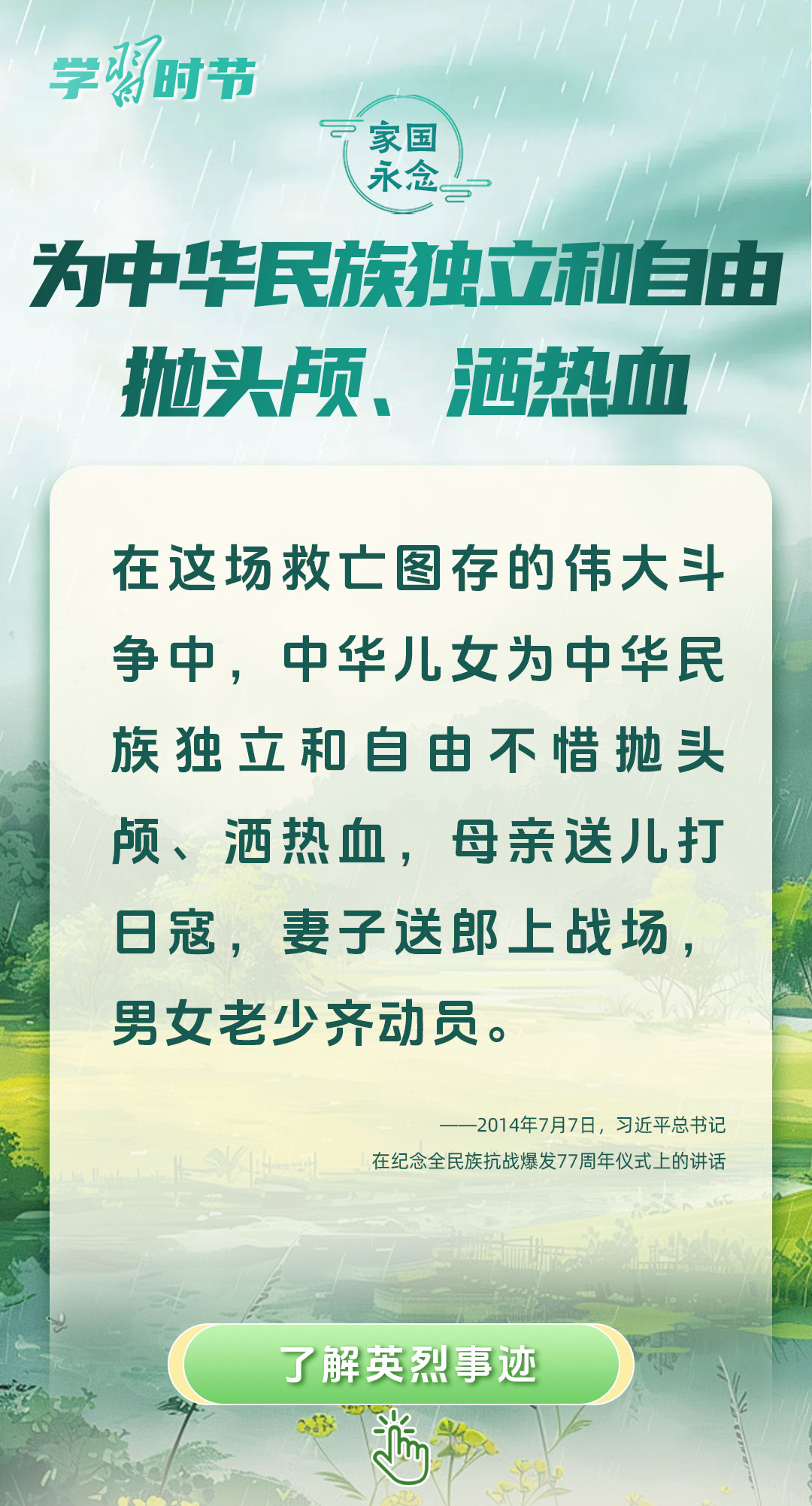 黨的十八大以來,習近平總書記曾在多個場合講述英烈故事、致敬英烈精神、緬懷英烈忠魂,表達對英烈的崇敬之情。清明節(jié)到來之際,讓我們重溫習近平總書記的相關重要講話,崇尚英雄、緬懷英烈,厚植家國情懷,凝聚前行力量。