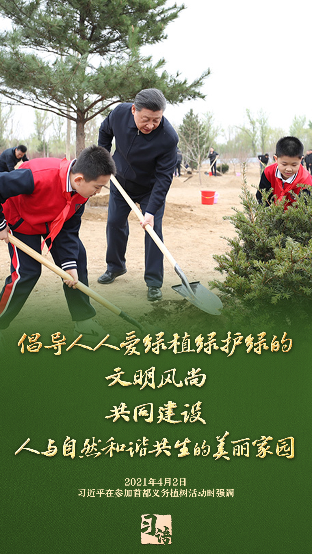 “植樹造林是一件很有意義的事情,是一項功在當(dāng)代、利在千秋的崇高事業(yè),要一以貫之、持續(xù)做下去?!弊?013年以來的13個春天里,無論晴雨,習(xí)近平總書記都會拿起鐵鍬,與干部群眾一起參加首都義務(wù)植樹活動。鏟土造坑、培土圍堰、提水澆灌,總書記身體力行種下綠色的希望,對擴綠興綠護綠、建設(shè)美麗中國提出明確要求。一起學(xué)習(xí)。