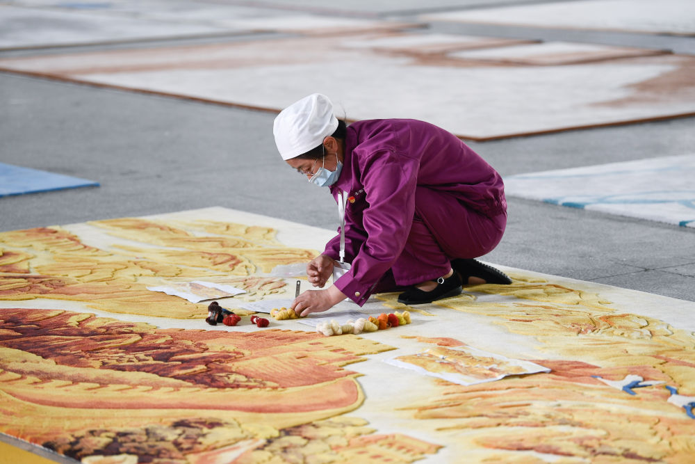 青海湖畔翱翔的水鳥、雪山下起舞的藏族女孩……在圣源地毯集團(tuán)有限公司車間內(nèi),手持電織槍的女工們,正按照設(shè)計(jì)圖織出精美立體的圖案。