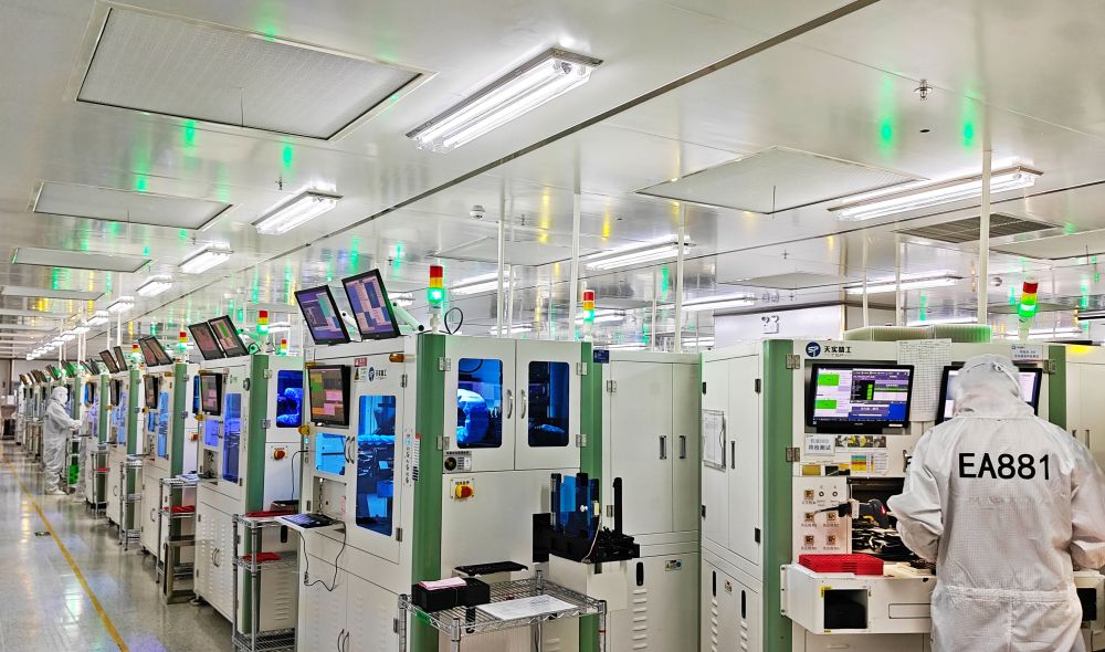 走進(jìn)重慶市天實(shí)精工科技有限公司無塵車間,智能機(jī)器人有條不紊地將芯片送上生產(chǎn)線,經(jīng)過自動清洗、表面貼裝、芯片封裝、鏡頭裝聯(lián)等工序,一顆顆攝像頭模組就此誕生。