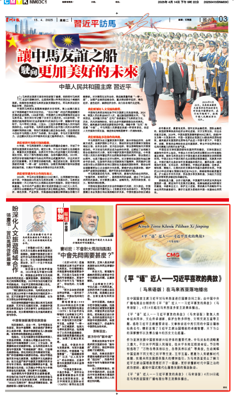4月15日,馬來西亞中文、英文、馬來文主流媒體《星洲日?qǐng)?bào)》《星報(bào)》《陽光日?qǐng)?bào)》分別刊發(fā)節(jié)目在馬來西亞落播的消息。文章指出,《平“語”近人——習(xí)近平喜歡的典故》(馬來語版)特別選取了“萬物各得其和以生,各得其養(yǎng)以成”等典故,生動(dòng)闡釋中國(guó)堅(jiān)持不同文明之間平等交流、互學(xué)互鑒,愿意為人類破解時(shí)代難題、實(shí)現(xiàn)共同發(fā)展提供強(qiáng)大的精神指引,有助于馬來西亞民眾更好讀懂新時(shí)代中國(guó)之治的成功密碼,感知中國(guó)式現(xiàn)代化蓬勃發(fā)展的強(qiáng)勁脈動(dòng)。