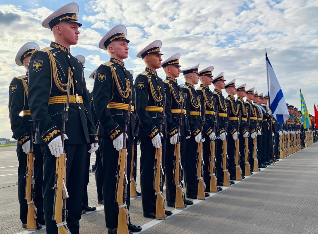 俄方在機場舉行隆重迎接儀式。軍樂團奏中俄兩國國歌。習近平檢閱儀仗隊并觀看分列式。
