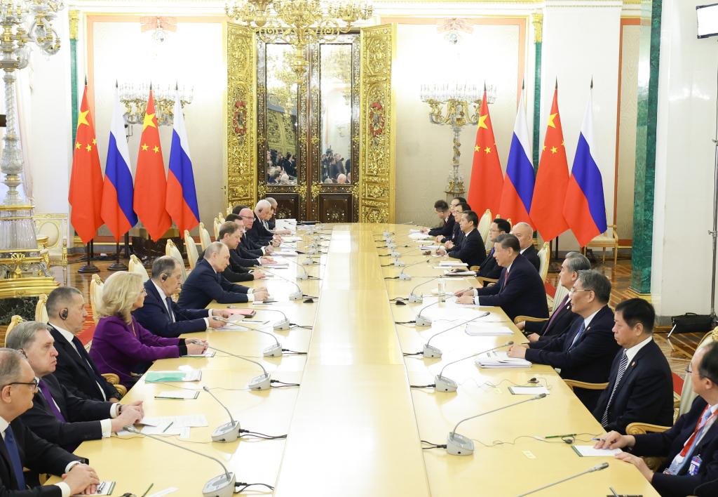 當?shù)貢r間5月8日下午,普京同習近平在克里姆林宮總統(tǒng)辦公室進行茶敘。