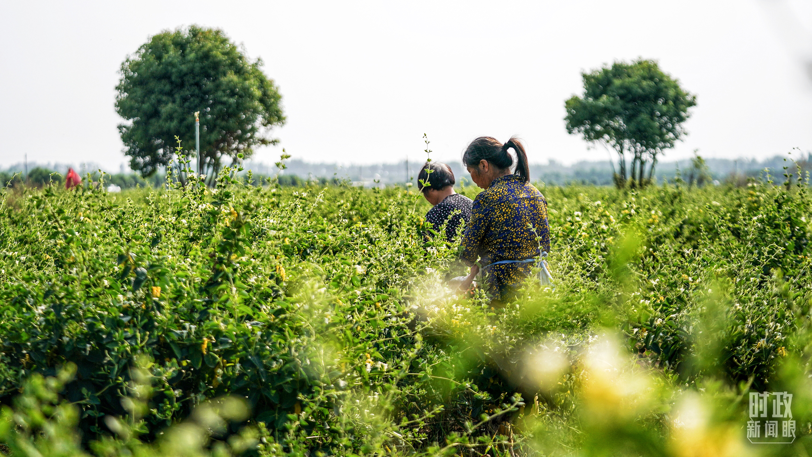五月,河南農(nóng)民采摘金銀花。(總臺國廣記者李晉拍攝)