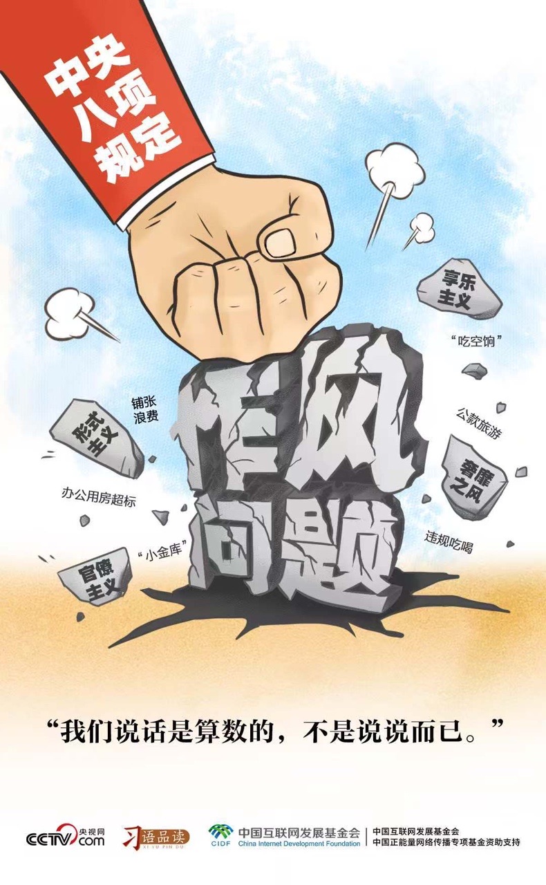 誠(chéng)信的本質(zhì)是“說(shuō)話算數(shù),做事負(fù)責(zé)”。八項(xiàng)規(guī)定指導(dǎo)思想就是從嚴(yán)要求,著重強(qiáng)調(diào)鍥而不舍抓落實(shí)。