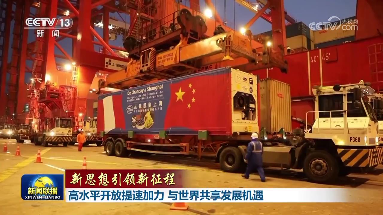 央視網(wǎng)消息(新聞聯(lián)播):習(xí)近平總書記強(qiáng)調(diào),中國將繼續(xù)推動高質(zhì)量發(fā)展,擴(kuò)大高水平對外開放,同各國分享發(fā)展機(jī)遇,為地區(qū)乃至世界經(jīng)濟(jì)帶來更多穩(wěn)定性和確定性。今年以來,我國依托超大規(guī)模市場優(yōu)勢,在擴(kuò)大國際合作中提升開放能力,不斷拓展經(jīng)濟(jì)發(fā)展新空間,與世界共享發(fā)展機(jī)遇。