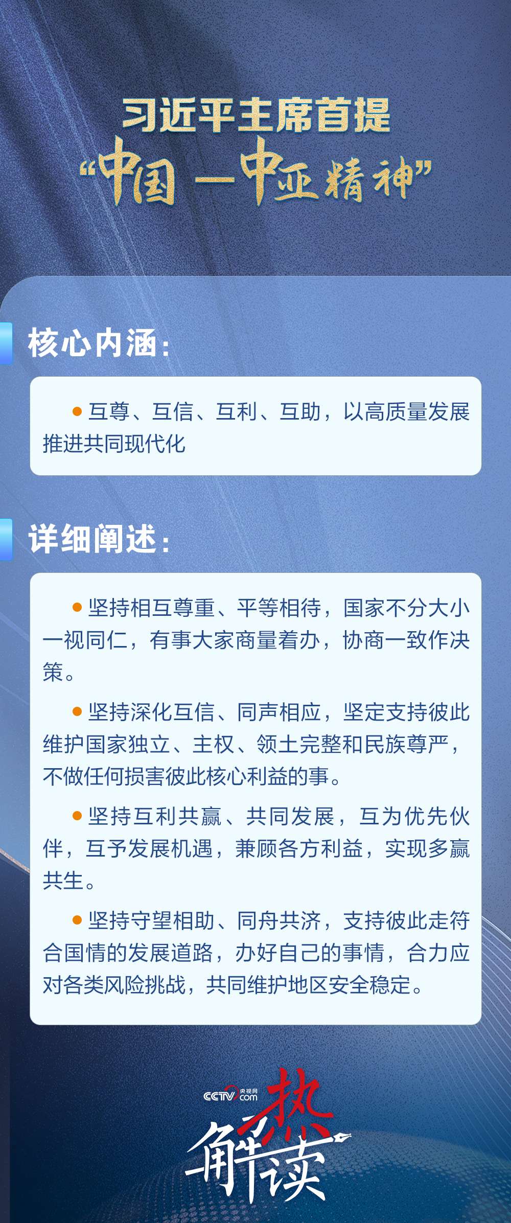當(dāng)?shù)貢r間6月17日,習(xí)近平主席在哈薩克斯坦首都阿斯塔納出席第二屆中國—中亞峰會并作主旨發(fā)言,首次提出“中國—中亞精神”。
