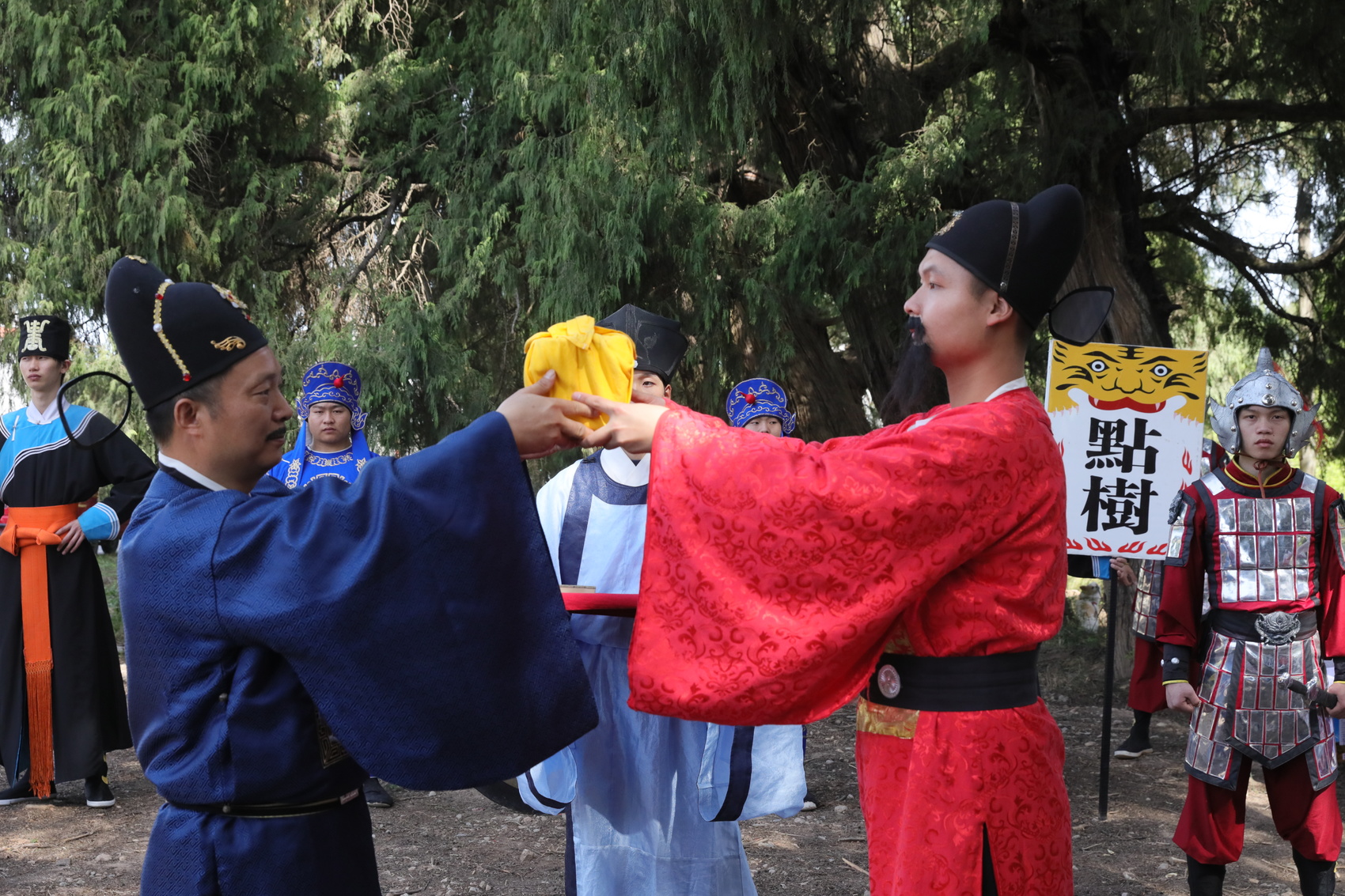 “走馬點(diǎn)樹,驗(yàn)數(shù)交?。 ?月21日,翠云廊景區(qū),《點(diǎn)樹交印》沉浸式演出再次上演:身著明代官服的“離任縣令”與“新任縣令”,手持清單,認(rèn)真清點(diǎn)每一棵古柏,完成“點(diǎn)樹交印”。自2023年8月推出以來,該演出已上演300余場(chǎng),場(chǎng)場(chǎng)吸引眾多游客圍觀拍攝。