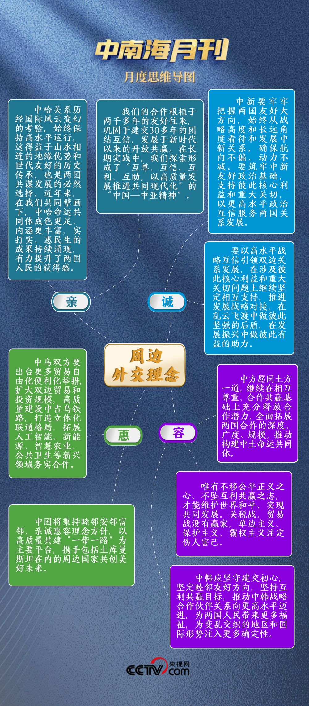 山水相連,唇齒相依。4月東南亞之行、5月訪問(wèn)俄羅斯、6月赴中亞,今年以來(lái)習(xí)近平主席三次出訪都聚焦周邊國(guó)家。正如習(xí)近平主席常說(shuō):“親戚越走越近,朋友越交越深。”