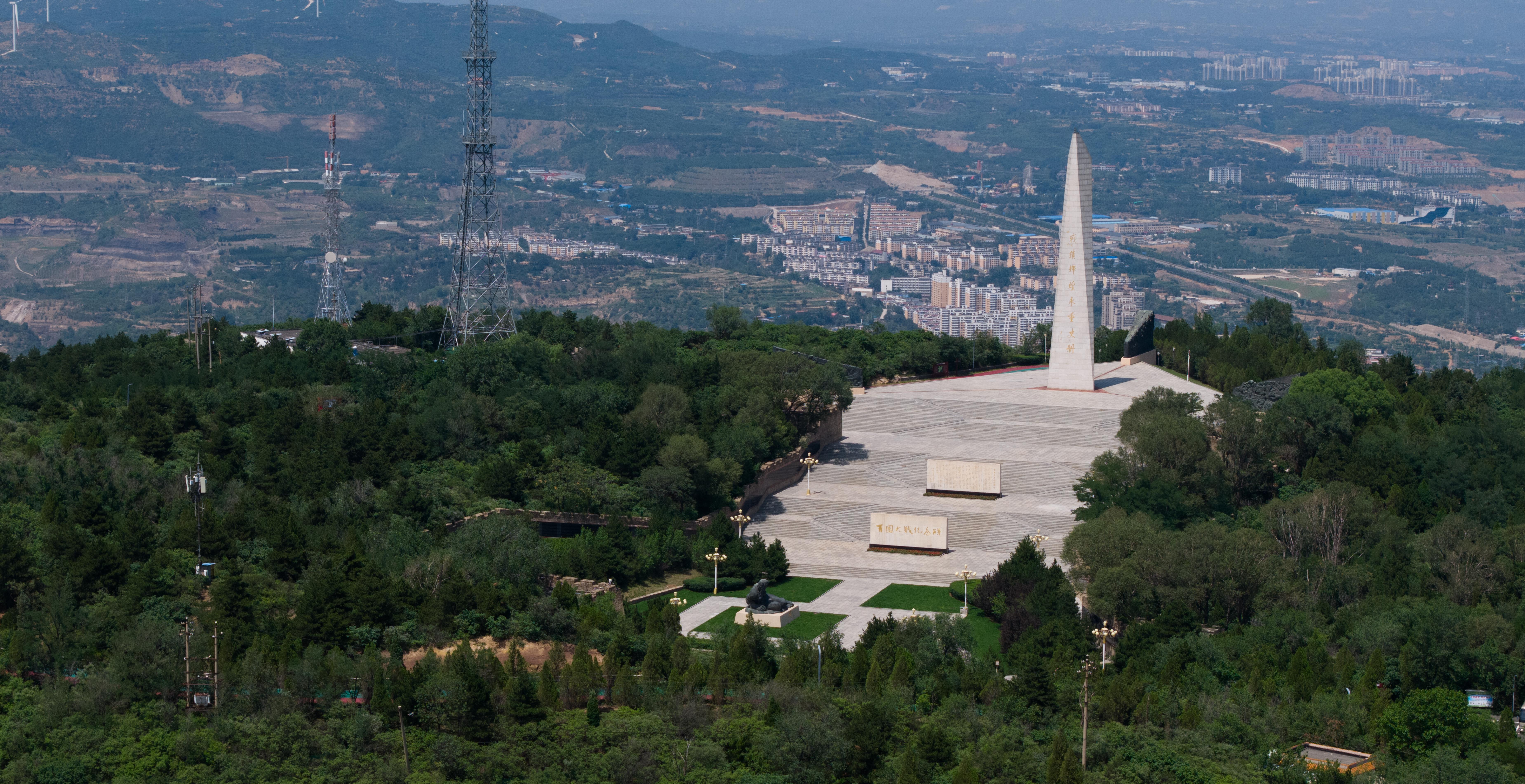 △獅腦山頂峰,百團大戰(zhàn)紀(jì)念碑如一把鋒利的刺刀直插云霄。(總臺國廣記者李晉拍攝)