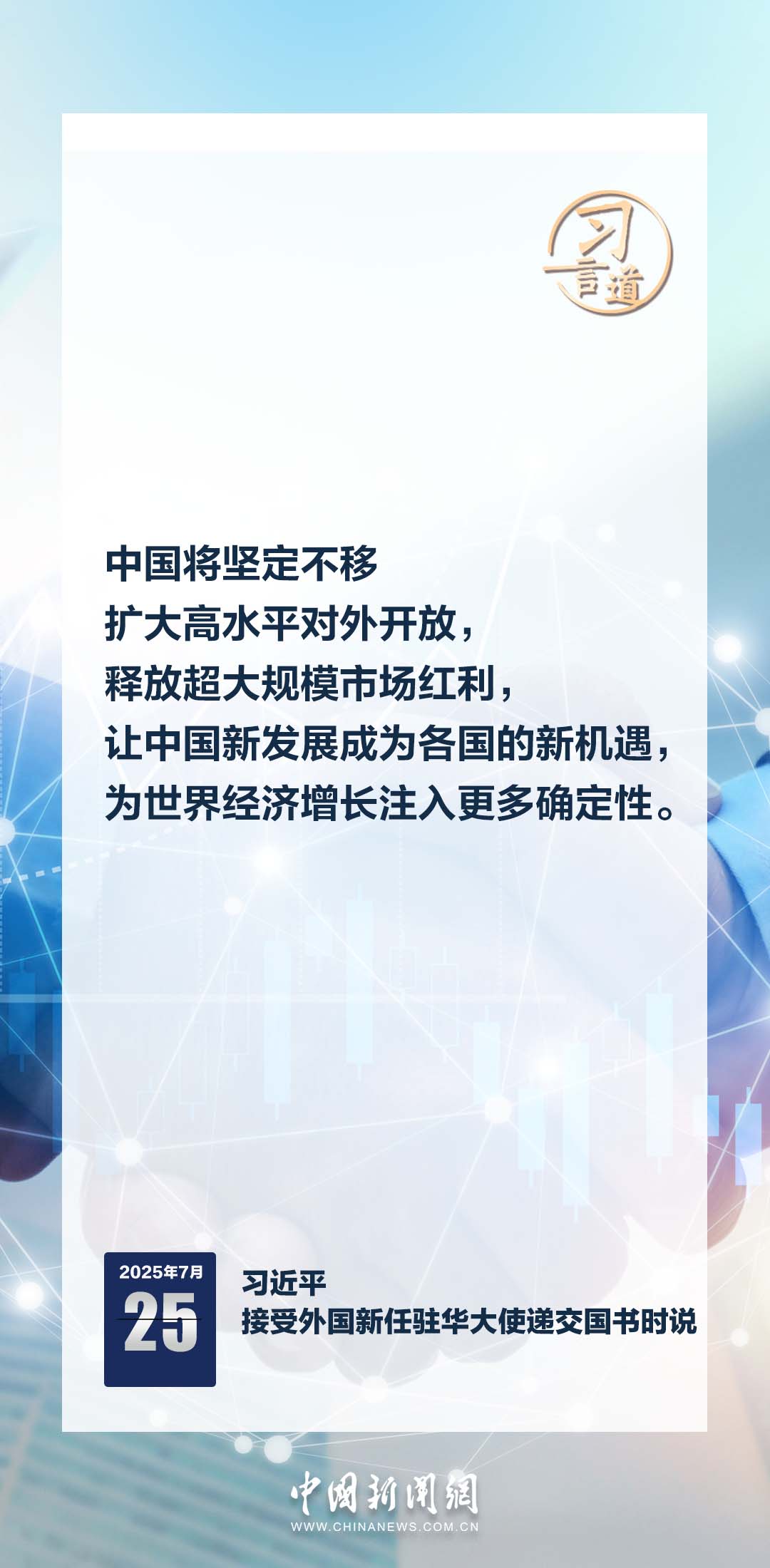 7月25日,國家主席習(xí)近平在北京人民大會堂接受16位駐華大使遞交國書。儀式結(jié)束后,習(xí)近平在北京廳對使節(jié)們發(fā)表講話。習(xí)近平指出——