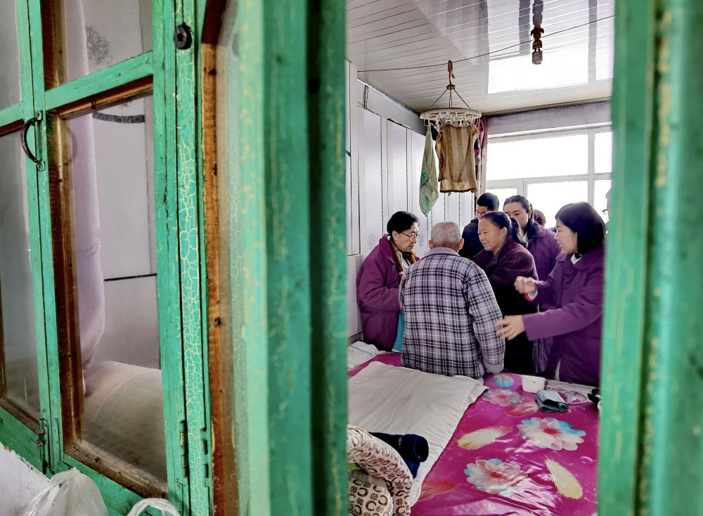2024年11月26日,87歲的遼寧金秋醫(yī)院“菊香愛心團(tuán)隊(duì)”領(lǐng)隊(duì)張菊香(左一)冒雪到行動不便的患者家中診治。多年來,數(shù)百名熱心公益事業(yè)的“菊香愛心團(tuán)隊(duì)”醫(yī)務(wù)工作者在遼寧的鄉(xiāng)村、街道社區(qū)為群眾提供優(yōu)質(zhì)醫(yī)療服務(wù),先后開展大型義診活動近百次,診治群眾超過6萬人次;舉辦健康科普講座超過60場,受益群眾超過4萬人;培訓(xùn)鄉(xiāng)村基層醫(yī)務(wù)人員上千人。