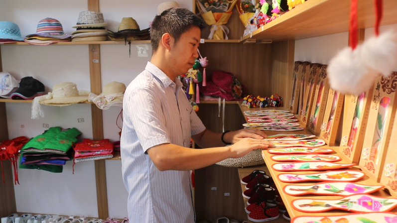 從外地返鄉(xiāng)的“90后”扶銀廷和妻子,在田鋪大塆創(chuàng)辦了一家“文創(chuàng)工坊”?!跋裥瑝|、虎頭枕、虎頭帽這些手工制品,都是我們當(dāng)?shù)匾恍├先?、大姐手工做的。這些特色的文創(chuàng)產(chǎn)品既能讓游客了解當(dāng)?shù)乇就廖幕?,又增加了村民收入?!狈鲢y廷說。