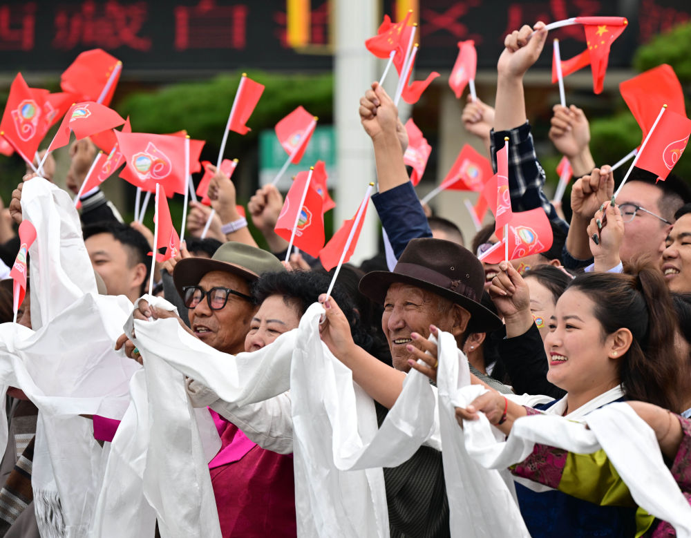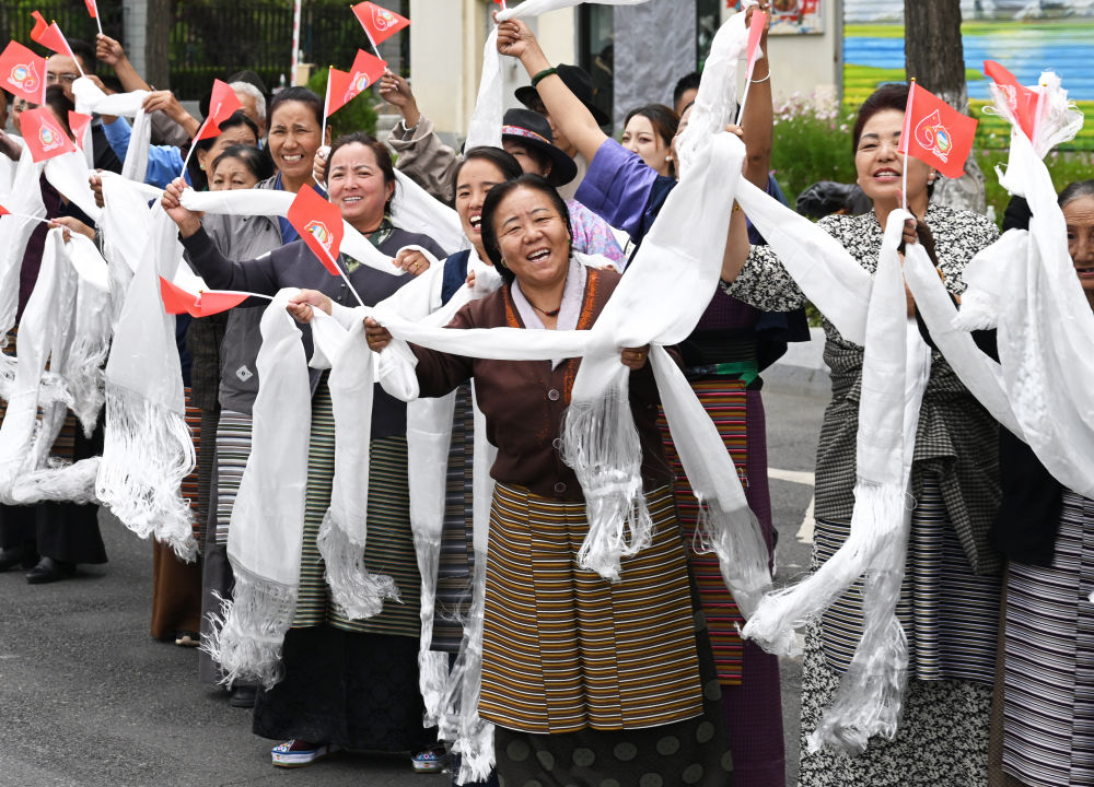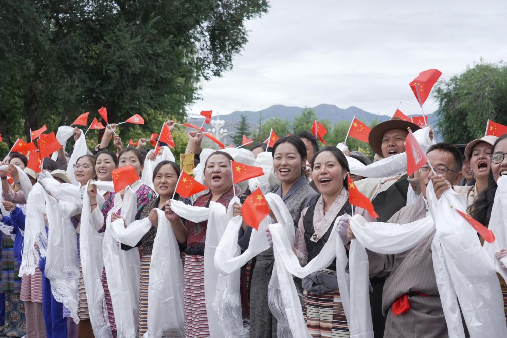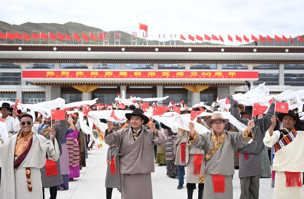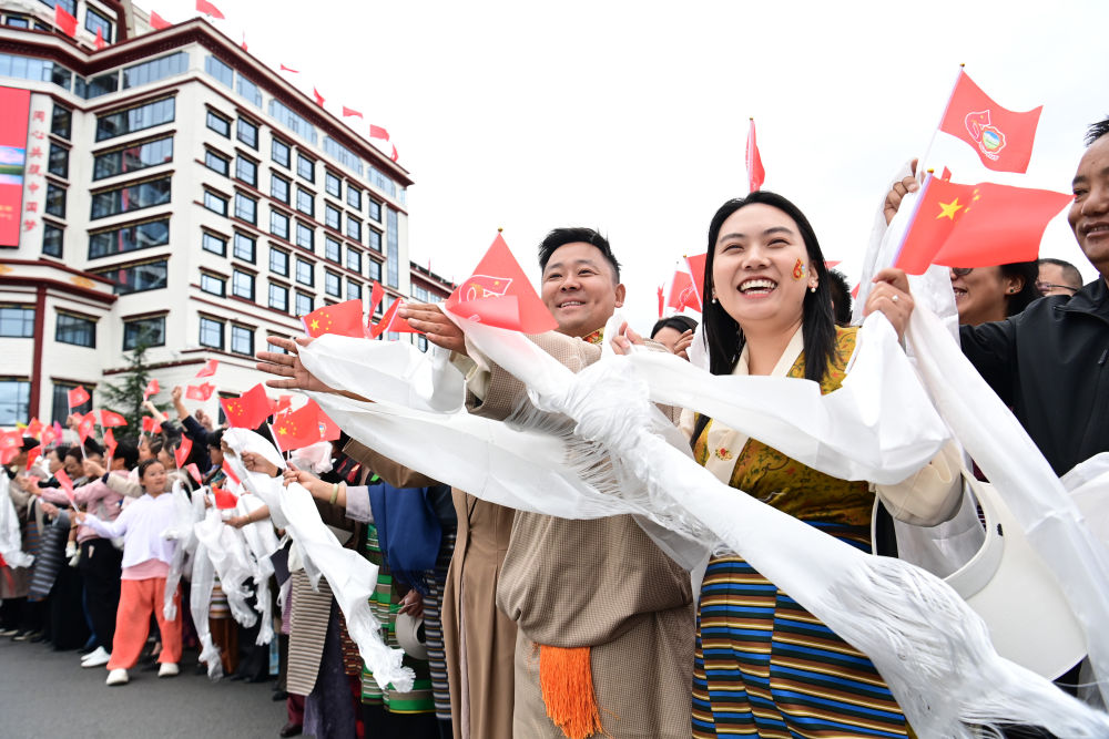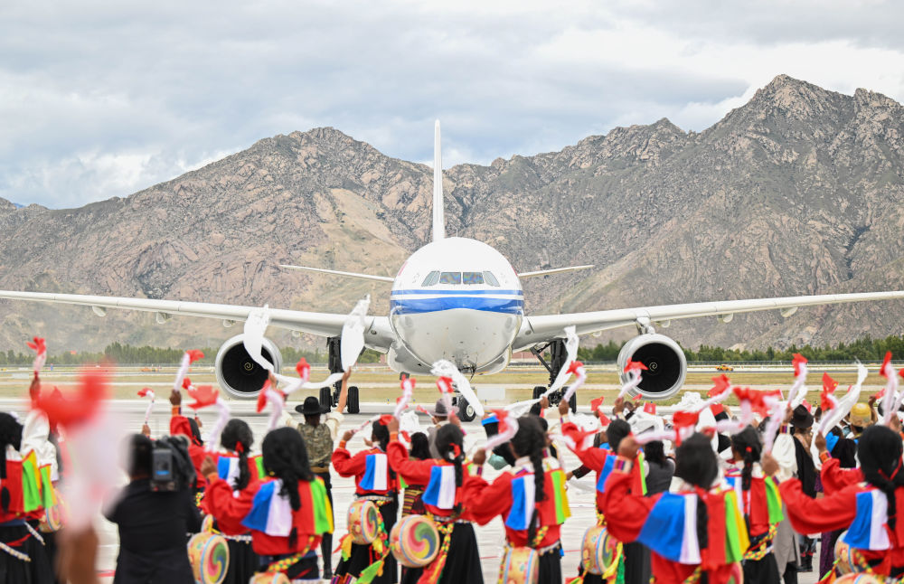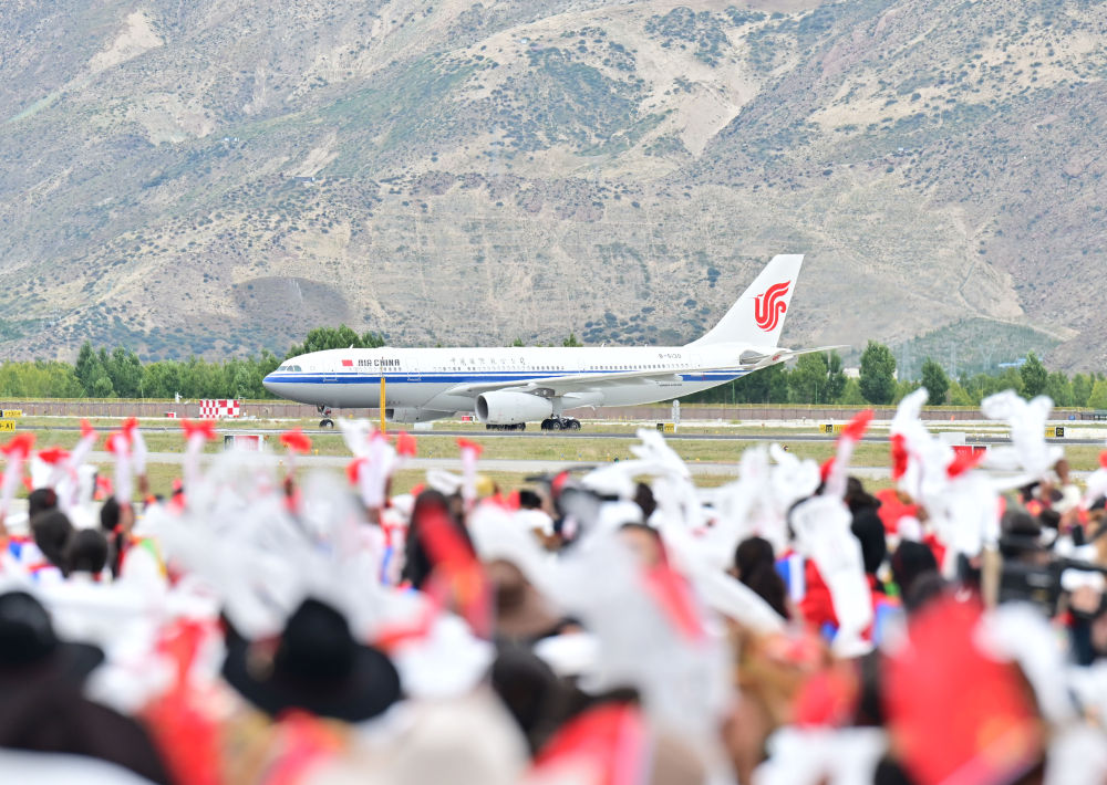 中共中央總書記、國(guó)家主席、中央軍委主席習(xí)近平率中央代表團(tuán)20日中午乘專機(jī)抵達(dá)拉薩,出席西藏自治區(qū)成立60周年慶?;顒?dòng)。習(xí)近平等在機(jī)場(chǎng)和拉薩市區(qū)受到西藏各族群眾的熱烈歡迎。