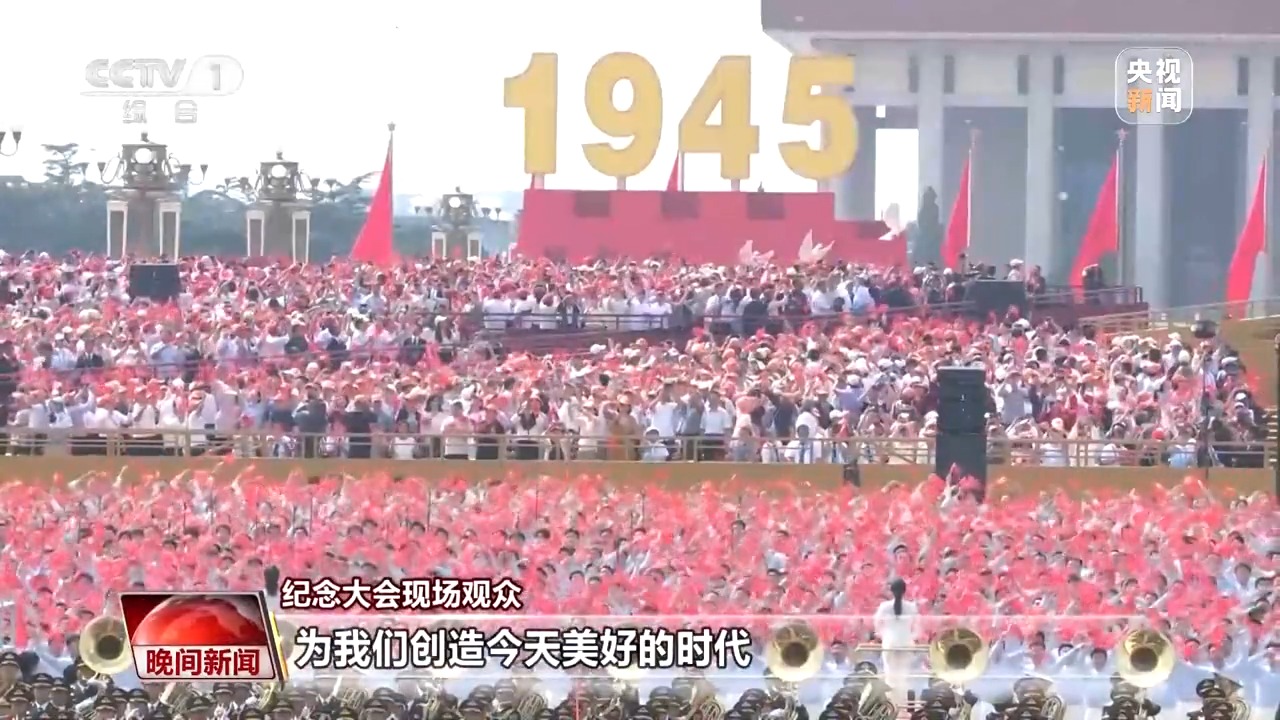 紀念大會現(xiàn)場觀眾:就像總書記說的“執(zhí)大象、天下往”,我覺得我們今天真的有能力、有擔當,去維護世界的繁榮與和平。同時我們也要銘記歷史,珍惜過去革命先輩、抗日英雄們創(chuàng)造的美好時代。在新時代,我們更應(yīng)該努力,踔厲奮發(fā),創(chuàng)造更加美好的未來。