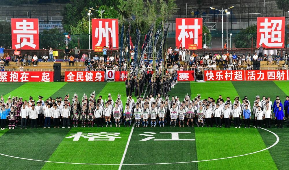 2025年8月23日,村民們在貴州“村超”球場演唱侗族大歌。當日,2025年首屆“村超”全國賽總決賽在貴州榕江縣“村超”球場舉行。賽事期間同時舉辦豐富多彩的民族歌舞展演、無人機表演、大型煙花秀,吸引數(shù)萬觀眾現(xiàn)場觀賽。近年來,貴州“村超”“村BA”等草根賽事持續(xù)升溫,巧妙融合體育競技、民族文化與文旅消費,打造“體育+”模式,撬動鄉(xiāng)村流量與經濟增量,賦能鄉(xiāng)村振興。