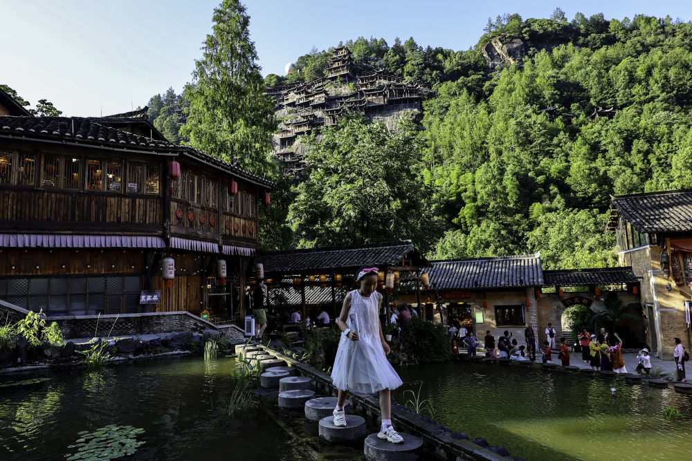 2025年7月11日,游客在位于江西省上饒市望仙鄉(xiāng)的望仙谷景區(qū)游覽。近年來,望仙谷景區(qū)因其獨特的“仙俠世界”景觀火爆出圈,吸引大批游客來此觀光。景區(qū)2024年接待游客310萬人次,全年實現(xiàn)旅游收入5.28億元,同時顯著帶動周邊鄉(xiāng)鎮(zhèn)的食、住、行、娛等行業(yè)發(fā)展。望仙谷景區(qū)的建設運營促進了村民返鄉(xiāng)和能人進鄉(xiāng),提供直接就業(yè)崗位超過2000個,帶動周邊就業(yè)3萬余人。