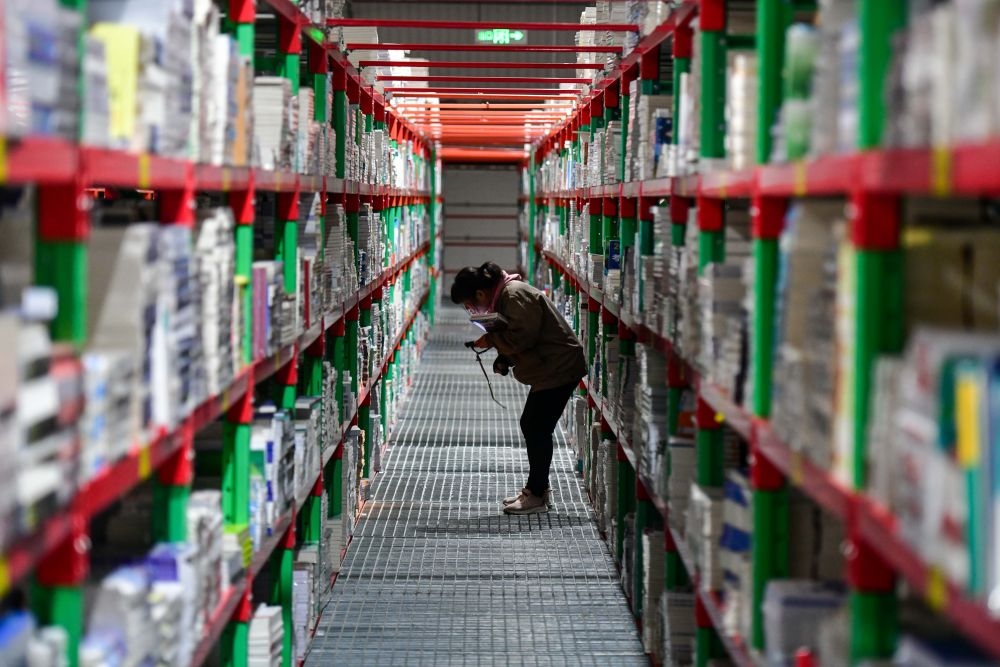 2025年2月19日,工作人員在泰安新聞出版小鎮(zhèn)圖書倉庫內整理書籍。近年來,山東省泰安市立足出版印刷產業(yè)優(yōu)勢,打造泰山新聞出版小鎮(zhèn),通過拉長壯大產業(yè)鏈,推動產業(yè)集聚發(fā)展,構建龍頭引領、鏈條延伸、集群共進的出版印刷產業(yè)“雁陣”。目前,小鎮(zhèn)已吸引60余家企業(yè)入駐,涵蓋編輯出版、印刷發(fā)行、倉儲物流、版權交易、研學旅游等產業(yè)鏈各環(huán)節(jié)。