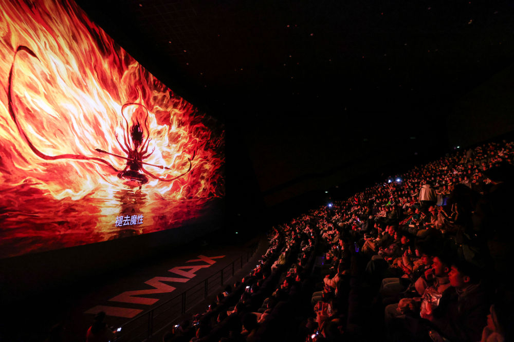 2025年2月25日,觀眾在貴陽越界影城IMAX影廳內觀看電影《哪吒之魔童鬧?!?。動畫電影《哪吒之魔童鬧?!纷?月29日上映后票房一路高歌猛進,僅用8天便登頂中國影史票房榜,隨后成為全球單一市場票房冠軍、全球動畫電影票房冠軍。2025年以來,國家電影局等相繼啟動“跟著電影品美食”“跟著電影去旅游”“中國電影消費年”活動,充分發(fā)揮電影對提振消費的積極作用;各地文旅部門等通過發(fā)布觀影消費券、舉辦主題活動等形式推動影旅融合,發(fā)展票根經濟。