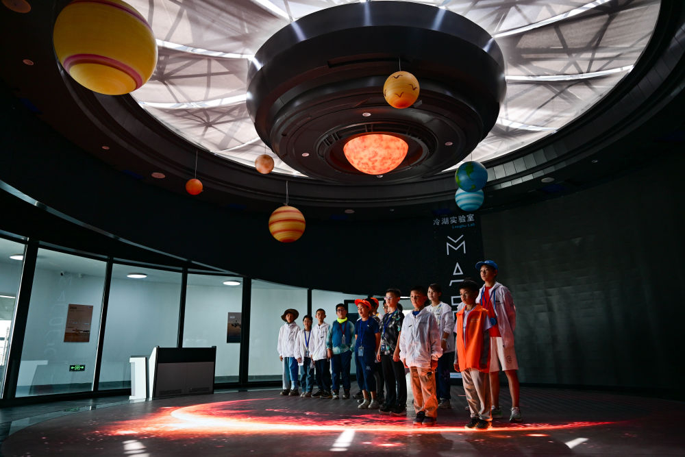 2025年7月29日,參加暑期研學的小朋友在青海省海西蒙古族藏族自治州冷湖鎮(zhèn)“冷湖實驗室”學習天文知識。冷湖鎮(zhèn)曾是因石油而興、又因油盡而沉寂的工業(yè)遺址小鎮(zhèn)。然而,得天獨厚的地理條件,讓冷湖鎮(zhèn)成為理想的觀星地。近年來,當?shù)匕l(fā)展科幻特色文旅,讓戈壁小鎮(zhèn)煥發(fā)新的生機。冷湖天文觀測基地引進十余家科研單位的數(shù)十臺望遠鏡,依托天文資源和戈壁奇景,打造火星實驗室、黑獨山等“出圈”地標。連續(xù)舉辦多屆的“冷湖科幻文學獎”,更讓這片土地成為科幻創(chuàng)作的新高地。冷湖鎮(zhèn)以科幻點亮文旅新場景,也為中國西北工業(yè)小鎮(zhèn)的轉型探索出一條充滿想象力的新路徑。
