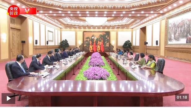 10月14日上午,國(guó)家主席習(xí)近平在北京人民大會(huì)堂會(huì)見來(lái)華出席全球婦女峰會(huì)的斯里蘭卡總理阿馬拉蘇里亞。