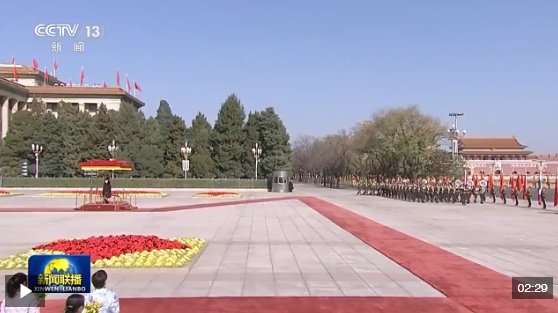 哇集拉隆功抵達(dá)時(shí),禮兵列隊(duì)致敬。習(xí)近平同哇集拉隆功登上檢閱臺(tái),軍樂團(tuán)奏中國國歌和泰國頌圣歌,天安門廣場(chǎng)鳴放禮炮21響。哇集拉隆功在習(xí)近平陪同下檢閱中國人民解放軍儀仗隊(duì),并觀看分列式。