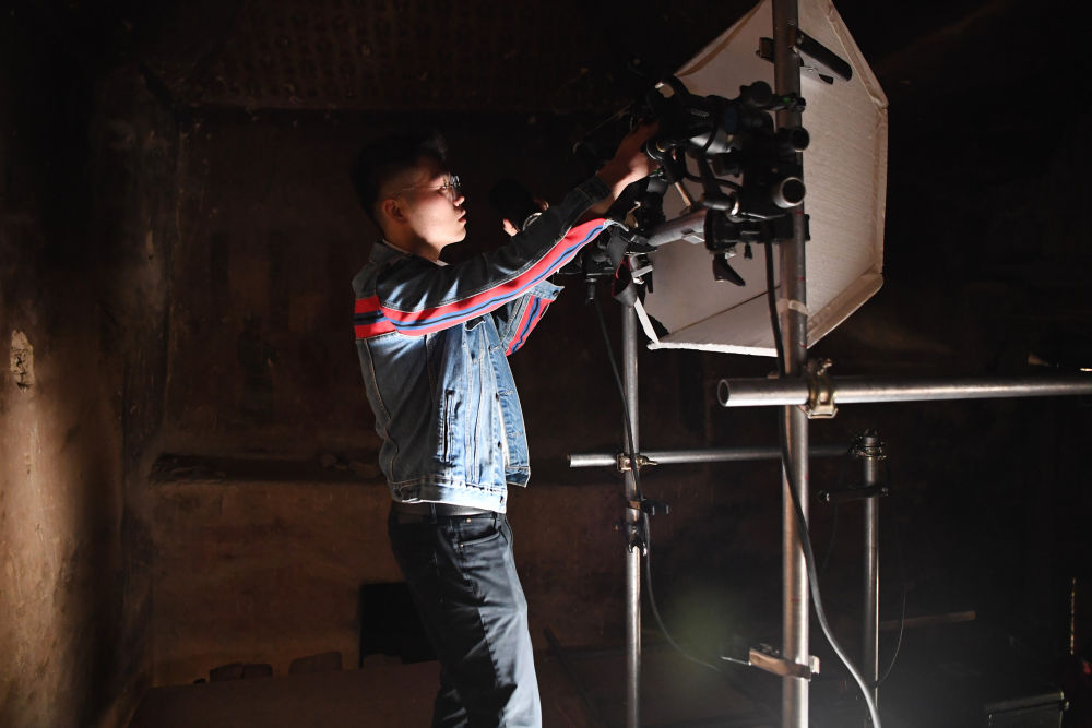 2023年4月25日,敦煌研究院文物數(shù)字化保護團隊圖像采集人員熊業(yè)騰在洞窟內調試設備,準備采集壁畫圖像。30多年前,敦煌研究院便嘗試以數(shù)字技術讓古老石窟“芳華永駐”。2016年,“數(shù)字敦煌”資源庫上線,首次向全球免費共享30個敦煌石窟的高清圖像和全景漫游,用戶足不出戶就能欣賞到高清的敦煌文化數(shù)字資源,目前訪問用戶遍布全球78個國家,累計訪問量超過2000萬次。