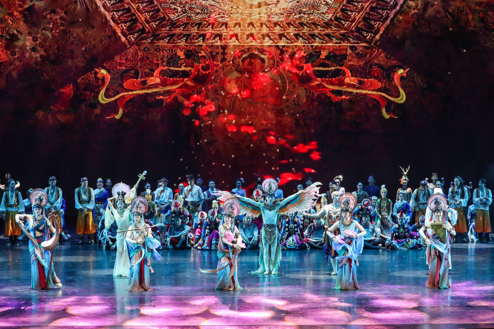 2025年9月20日,演員在敦煌大劇院表演新版《絲路花雨》。1979年,大型民族舞劇《絲路花雨》在中國西北誕生。編創(chuàng)者們從敦煌莫高窟的壁畫和彩塑中尋找靈感,將壁畫上凝固了千年的舞姿,轉化為動態(tài)舞蹈語言。40多年來,《絲路花雨》累計演出超4000場,足跡遍布40多個國家和地區(qū),被譽為“中國舞劇的里程碑”和“活的敦煌壁畫、美的藝術享受”。此次新版歷經兩年半創(chuàng)排,通過復原與創(chuàng)新對經典藝術進行當代詮釋,彰顯了中華優(yōu)秀傳統(tǒng)文化的生命力。