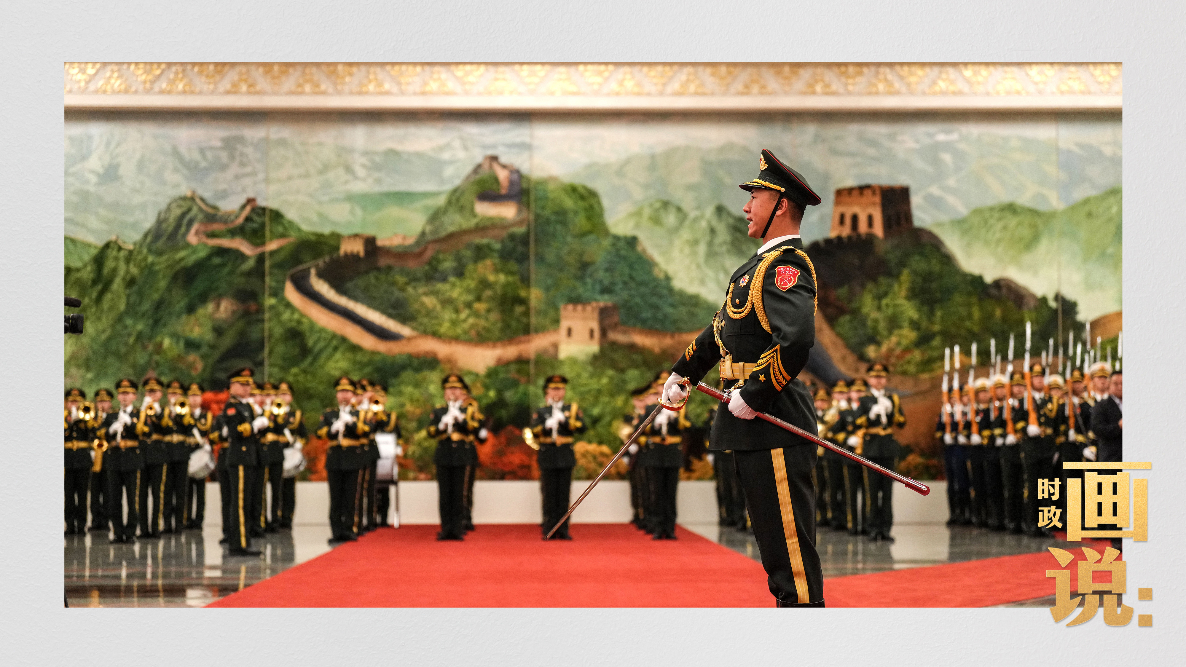 △習(xí)近平和夫人彭麗媛在人民大會堂北大廳為馬克龍和夫人布麗吉特舉行歡迎儀式