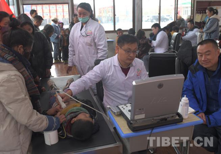 圖為解放軍總醫(yī)院醫(yī)療隊(duì)在理塘縣中木拉鄉(xiāng)中心小學(xué)篩查先心病患兒。攝影:唐召明