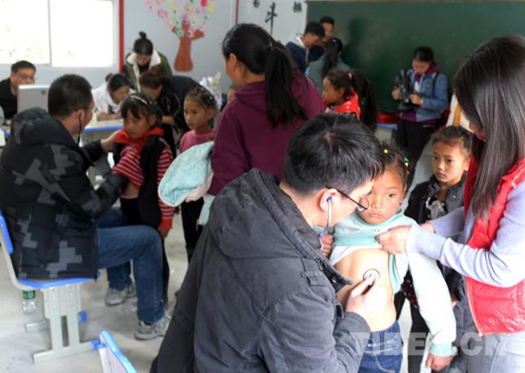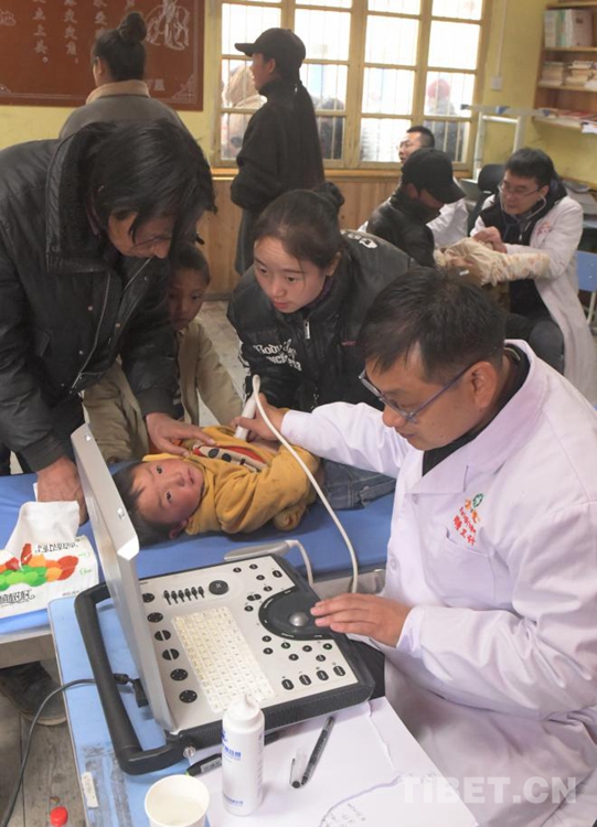 圖為解放軍總醫(yī)院醫(yī)療隊(duì)在巴塘縣竹巴龍小學(xué)篩查先心病患兒。攝影:唐召明