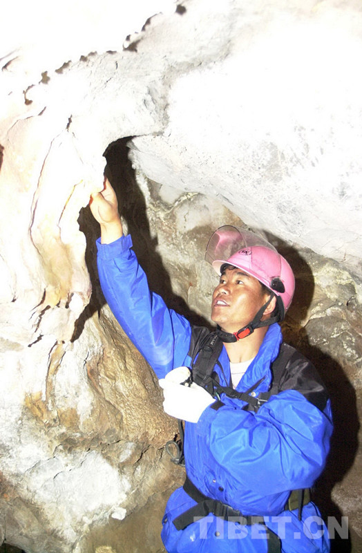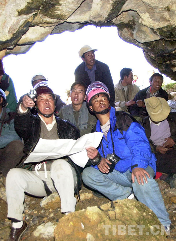 這是西藏藏醫(yī)學院教師格桑頓珠(前右)在班戈縣保吉鄉(xiāng)娘日貢溶洞考察(唐召明2001年攝)