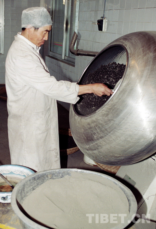 這是西藏昌都地區(qū)利民藏藥廠工人正在生產藏藥。該藏藥廠曾被人事部和國家醫(yī)藥管理局授予全國醫(yī)藥系統(tǒng)先進單位稱號(唐召明1998年攝)