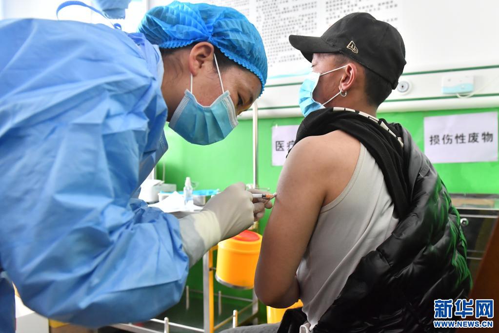 5月18日,居民在普蘭縣人民醫(yī)院接種新冠疫苗。新華社記者 孫瑞博 攝