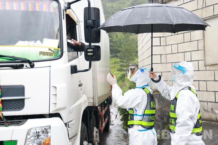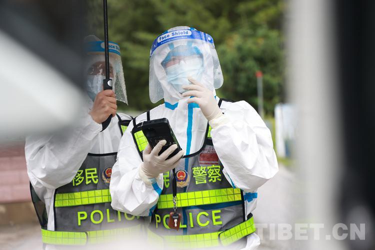 圖為西藏亞?wèn)|出入境邊防檢查站民警在防控卡點(diǎn)開(kāi)展查驗(yàn)工作