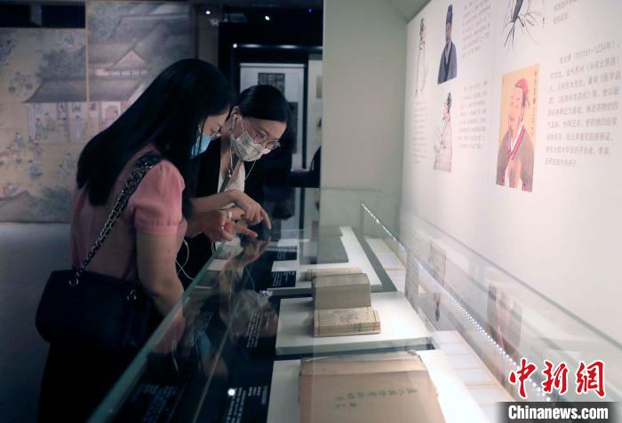 觀眾在觀看展出的中國傳統(tǒng)醫(yī)學(xué)文獻?!⊥趵?攝