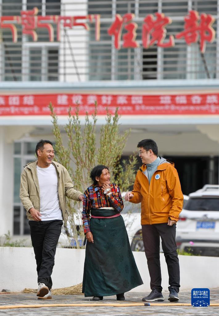7月31日,在阿里地區(qū)人民醫(yī)院,中國(guó)醫(yī)學(xué)科學(xué)院整形外科醫(yī)院醫(yī)生王克明(右)和西藏自治區(qū)人民醫(yī)院醫(yī)生旦增念扎(左)陪伴即將做手術(shù)的牧民巴吉放松散步。新華社記者 張汝鋒 攝