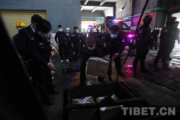 活動(dòng)啟動(dòng)后,貼有封條的50箱毒品被公安廳反恐特偵總隊(duì)公安民警和禁毒總隊(duì)民警裝運(yùn)至曲水縣危廢處置中心采用無(wú)公害化技術(shù)焚燒銷毀。