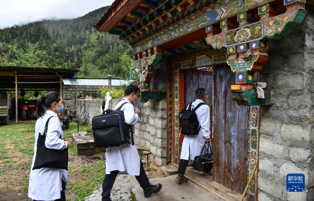 6月12日上午10點(diǎn),廣東珠海市人民醫(yī)院第七批援藏醫(yī)療隊(duì)隊(duì)長(zhǎng)王振疆、隊(duì)員陳冰、王彤旭和年輕的當(dāng)?shù)蒯t(yī)生尼瑪益西一起帶著醫(yī)療設(shè)備和藥品,離開(kāi)西藏米林市人民醫(yī)院,驅(qū)車(chē)前往30多公里外的吞不絨村為患者進(jìn)行診療。