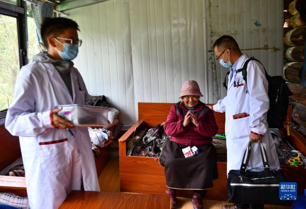 6月12日,阿珍感謝王振疆(右)和尼瑪益西(左)的診治。新華社記者 晉美多吉 攝