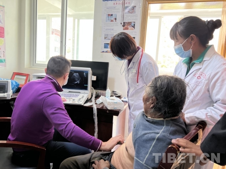 “彩超呢?”北京上地醫(yī)院院長張宇在衛(wèi)生院工作人員的帶領(lǐng)下來到衛(wèi)生院二樓為75歲的桑旦江措老人進(jìn)行胸部彩超檢查,“霍主任(中國中醫(yī)科學(xué)院望京醫(yī)院心內(nèi)科主任)懷疑他有心衰,患者不能平臥睡覺、走路氣喘、雙腿腫脹,所以我想通過超聲印證一下,昨天我們也篩查了一些有心衰跡象的群眾,平時(shí)大家覺得氣喘是小問題,忍忍就好了,實(shí)際上它還是很嚴(yán)重的,要及時(shí)治療?!睆堘t(yī)生告訴記者,“藏族群眾對(duì)骨科和胃腸道的關(guān)注度更高,但是心臟、血管、糖尿病等不會(huì)立馬表現(xiàn)出來的慢性病不太重視,這樣往往會(huì)錯(cuò)過最佳的治療時(shí)間。所以我們應(yīng)該通過講座和培訓(xùn),一方面要增強(qiáng)群眾的健康意識(shí),另一方面也要培養(yǎng)當(dāng)?shù)赜玫蒙?、留得住的技術(shù)型人才?!?/p>