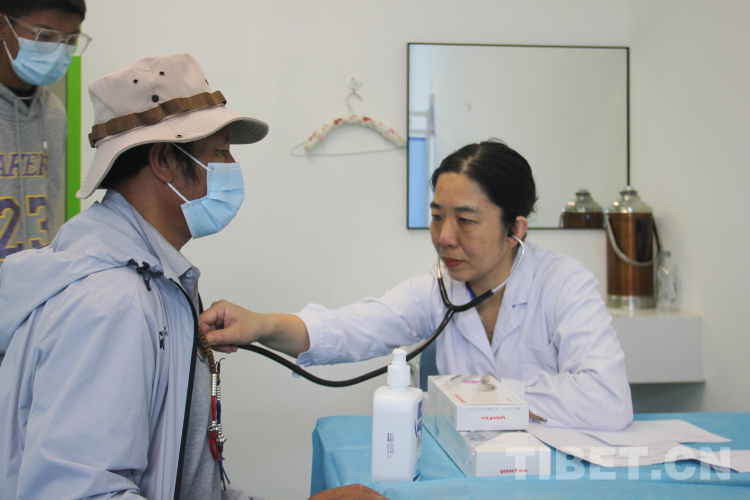圖為義診專家在拉薩市城關(guān)區(qū)人民醫(yī)院為患者聽診 攝影:旦曲