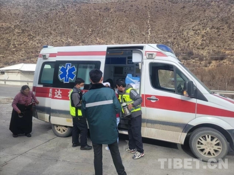 “沒事的,來,深呼吸。我們在去醫(yī)院的路上,昌都市人民醫(yī)院的急救車也正在趕過來,不用擔心。”隨車的陳祿彥醫(yī)生不停安慰著嘎吉,并不停觀察著她的情況。