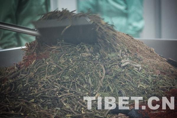 圖為混合攪拌的各種藏藥材原料。攝影:趙耀。