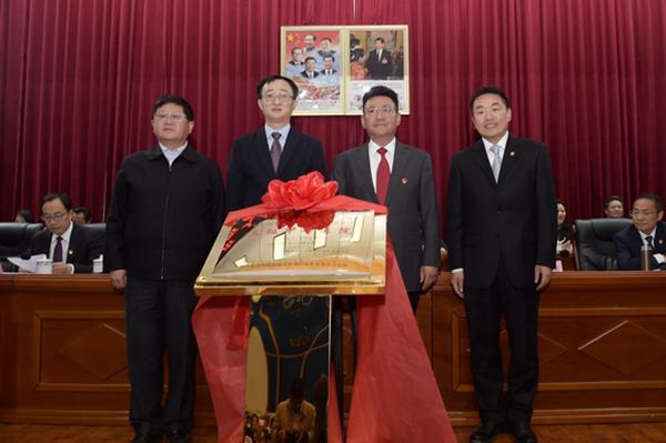 圖為西藏自治區(qū)衛(wèi)生和計劃生育委員會黨組成員、副主任胡學(xué)軍,上海市衛(wèi)生和計劃生育委員會主任鄔驚雷,西藏自治區(qū)人民政府副主席、日喀則市委書記張延清,上海市第八批援藏干部聯(lián)絡(luò)組組長、日喀則市委副書記、常務(wù)副市長倪俊南(從左至右)為日喀則市人民醫(yī)院掛牌三級甲等醫(yī)院 解放日報 曹磊攝