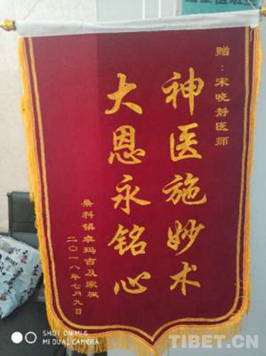 圖為患者家庭贈(zèng)予宋曉靜的錦旗 圖片由夏河縣醫(yī)院提供