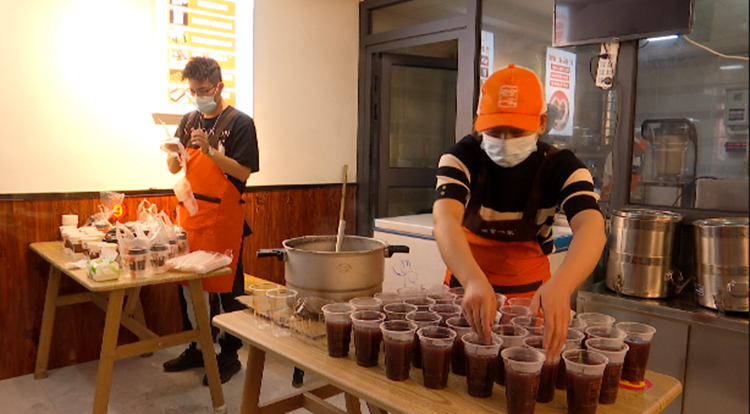 圖為“曉思魯突茶館”工作人員在為抗疫一線工作人員配送愛心藏面