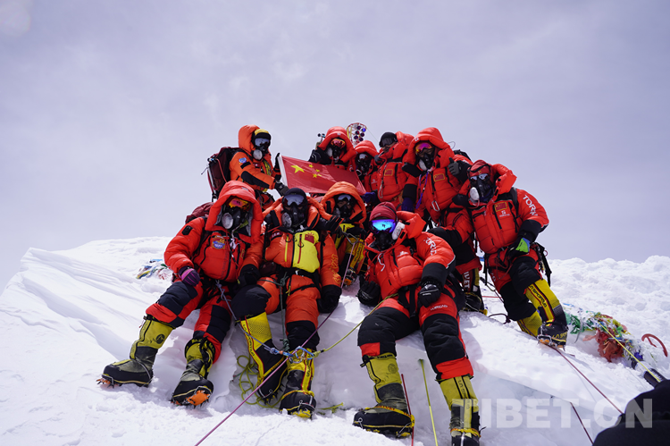 圖為2020年珠峰高程測(cè)量登山隊(duì)隊(duì)員在珠峰合影留念 攝影:西藏登山學(xué)校 扎西次仁