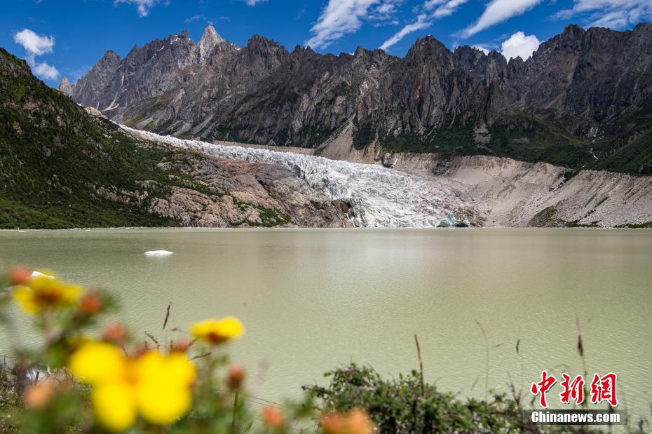 約雄冰川位于西藏自治區(qū)那曲市巴青縣境內(nèi),從空中俯瞰,巨大的冰川宛若一條巨龍,從6328米高的布加雪山峰頂傾瀉奔下,形成懸冰川體,蔚為壯觀。圖為約雄冰川融水形成的約雄措。 何蓬磊 攝